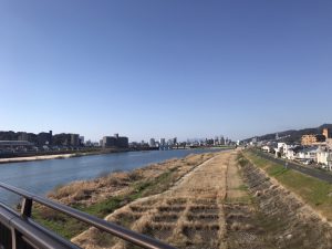 川の土手沿いはとても気持ちが良く、自転車がちょうどよい速度で、景色を