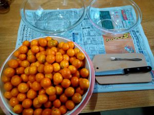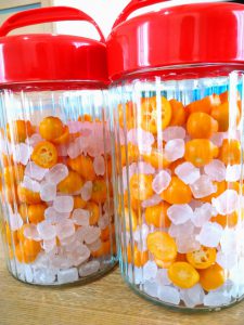 同じ重さの氷砂糖と一緒に瓶詰め。