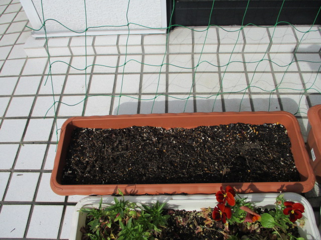 早く芽を出して、ネットに沿って伸びないかな~(^^)/