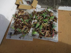 プランターから掘り起こしたチューリップの球根は、秋にまた植え戻す予定です。