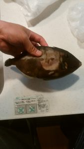 調理前、調理後です。(※冒頭ふぐちゃんと昨年末に釣った写真です)
