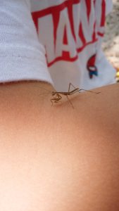最初に出会ったのは、カマキリの幼虫ですね。生まれてすぐの脱皮を終えたぐらいのコでしょうか。