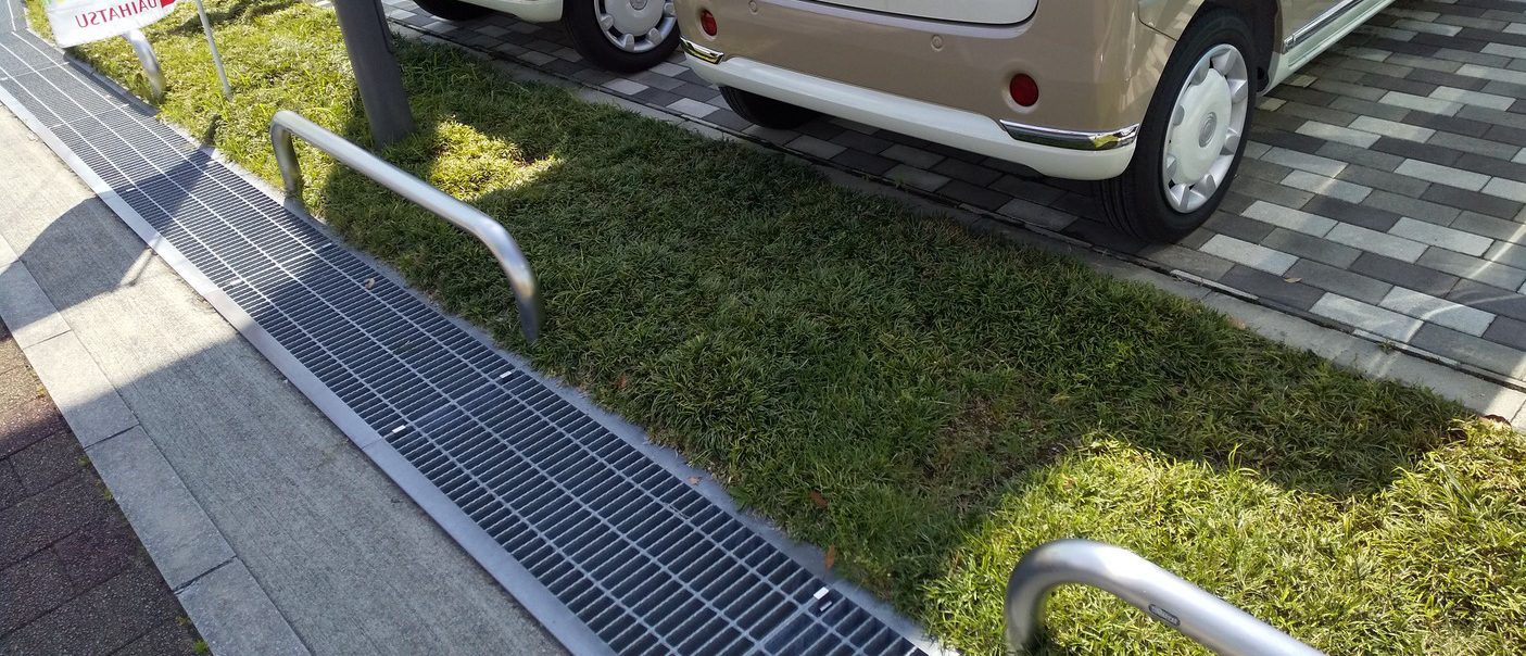 すくすく育った(?)雑草やグレーチングに溜まっている枯葉を