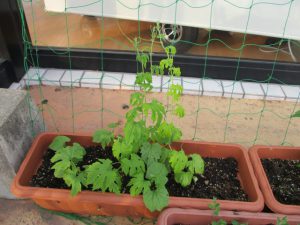 去年落ちた種から出た芽も、買ってきた苗と見分けが付かないくらい大きくなりました。