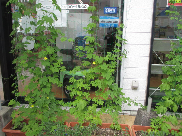 もうすぐりっぱなグリーンカーテンになりそうです!!