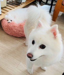 ニホンスピッツのしゅがあちゃん(奥の寝ているほうです