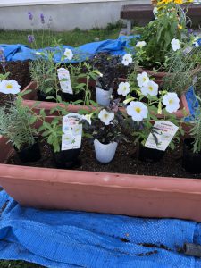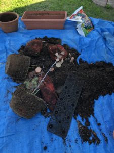 土がきれいになったら、肥料が入った培養土と混ぜ合わせて、新しいお花を植えていきます。