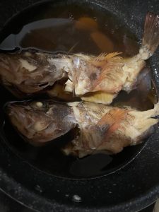 三笠初めてのカサゴは、無事、美味しい煮つけとなりました。