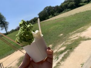 現在、コロナウィルスの影響でカフェスペースはテラス席のみになっておりましたが、草原の中でいただくジェラートもとても良かったです![]()