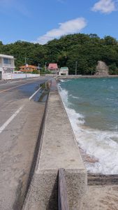 道中の海はまだ波が高く堤防を越えてくる波もあり非常に危険な