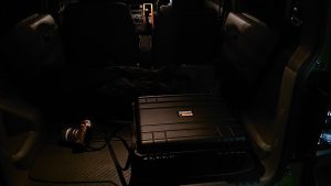出発準備・・・リヤシートを倒して天体望遠鏡とアイピース、小部品