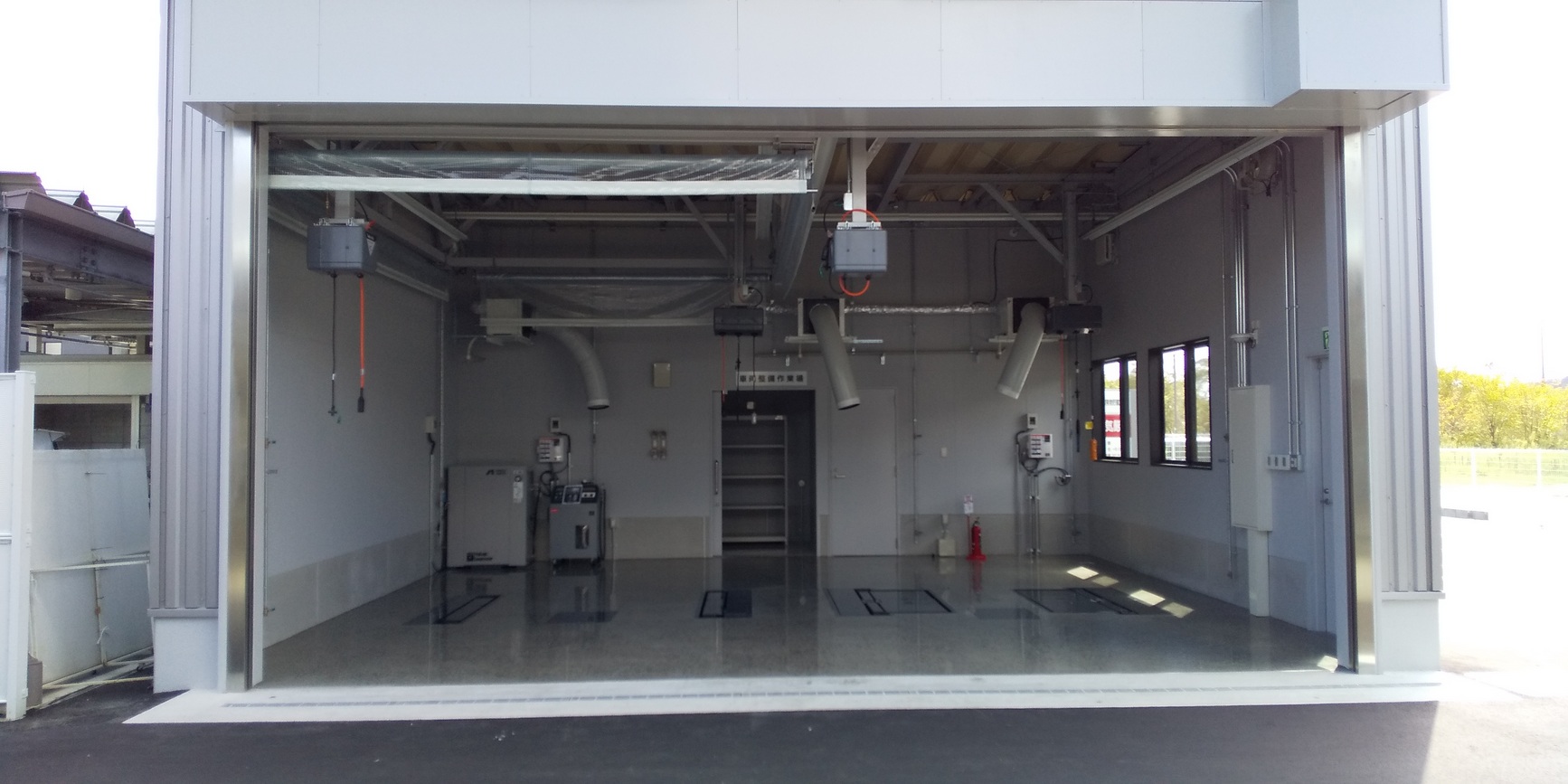 そしてこちらの工場は塗装をする際、周りに飛び散らないようにカーテンが下りてくる仕組みになっています!