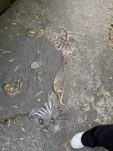 歩道には猫の絵がたくさん描いてあるのでキツい階段も楽しんで