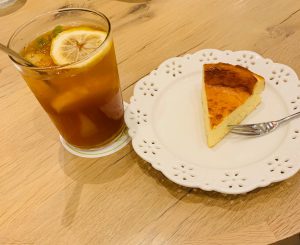 自家製コンポートのアップルスイーツティーとチーズケーキです