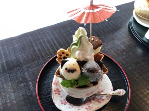 帰りに別のカフェで猫パフェを食べました(*”▽”)