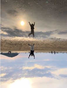 干潮時に風がなく水面が波たたなければ砂浜にできる水たまりに、