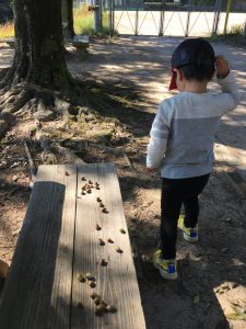 晴れていたらもっときれいな写真になったのですが…曇天で少し肌寒い中、遊具やボールで遊びました。