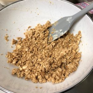 砕いたビスケット→混ぜ終わった生地 と型に流し入れたら…