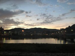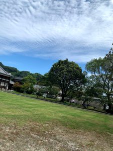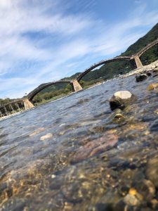 こちらは錦帯橋を渡った後に撮った写真です。とても綺麗で日頃の疲れを癒してくれるようでした![]()