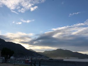 続いて自宅の駐車場から出勤前に一枚。呉市の片田舎、自宅のすぐ先に瀬戸内海を望む我が家。
