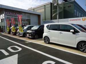 展示場には常時60台 、ダイハツ広島全体では約1000台の在庫があり、