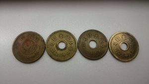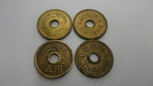写真の1番左も五円ですが中央の穴がありません。