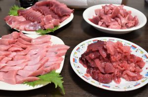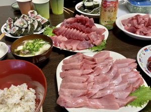 本マグロを丸々一匹持ってきて解体ショーをしてくれました!