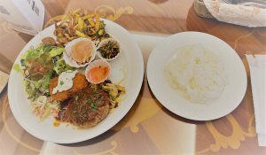 注文したのはハンバーグとカニクリームコロッケのランチです(*^^*)