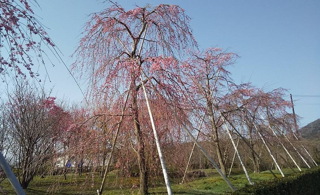 【枝垂桜庭園】といいまして、毎年見ごたえある桜が開花します。