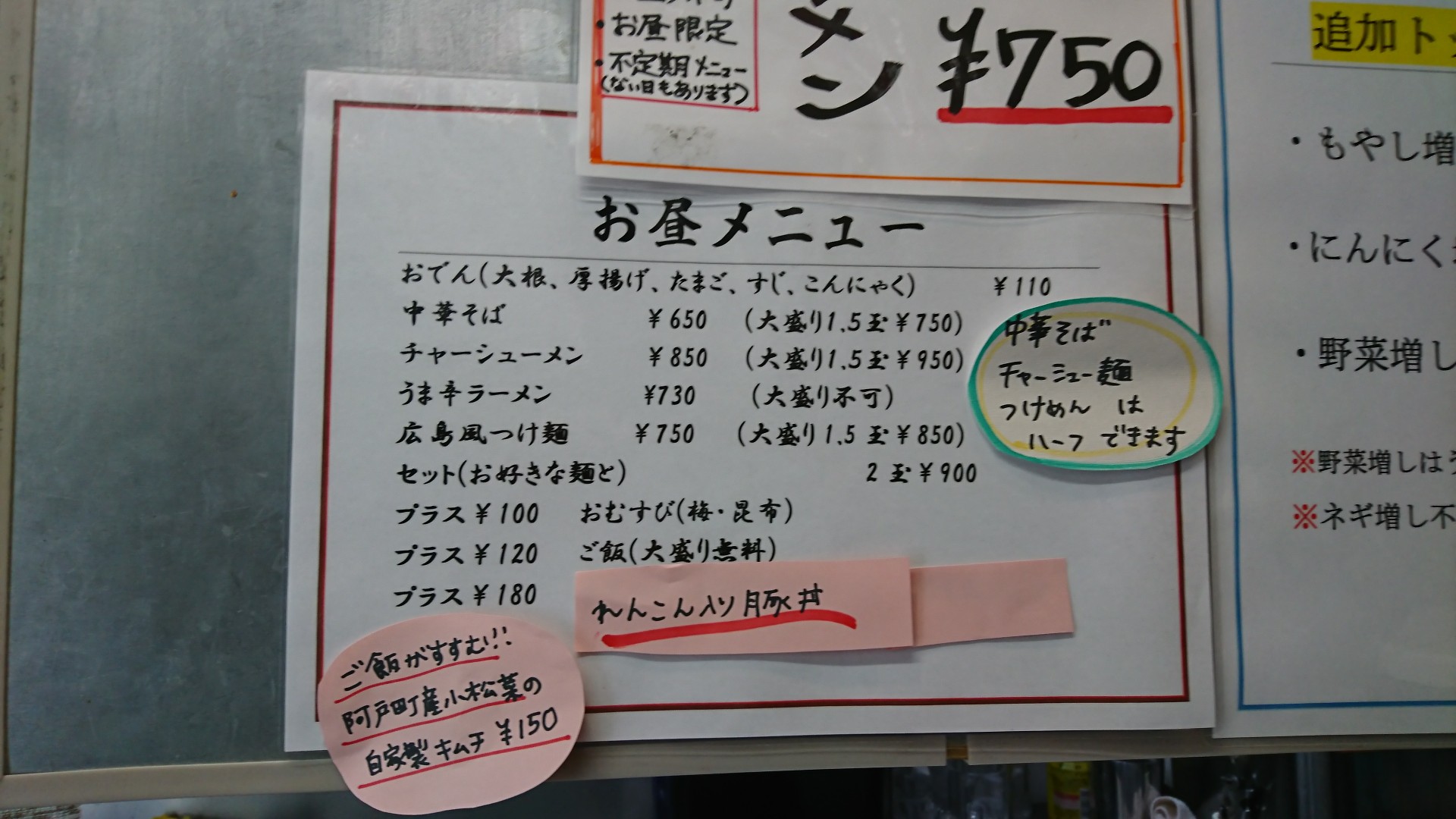 メニュー少し前に行った時の写真なので変更しているかも…(^^;