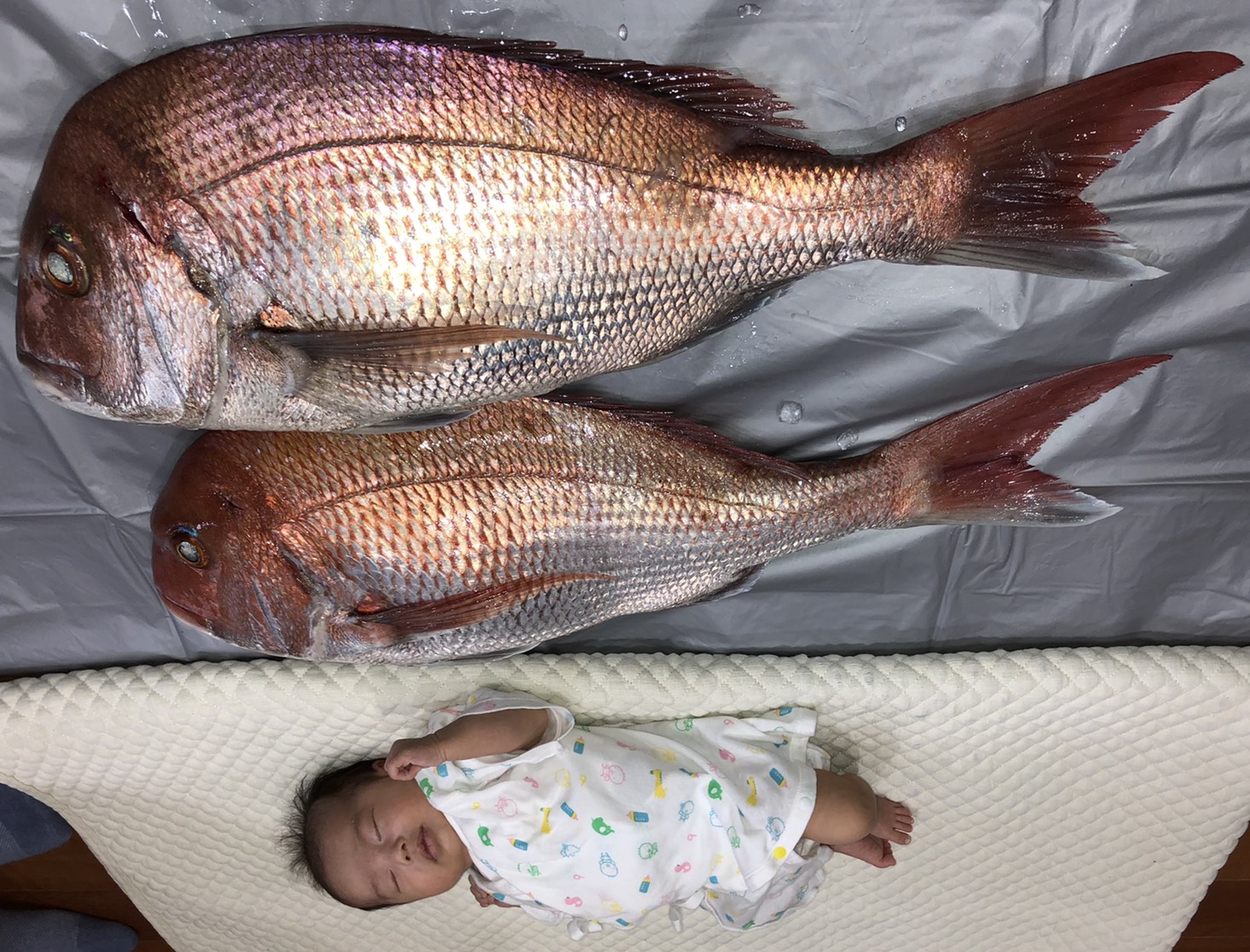 我が子と比べると、かなり大きい鯛です(;’∀’)笑