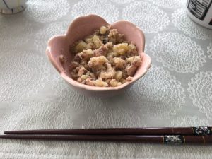 目安としては500ワットで5~6分ぐらい。レンジから出してスプーンの背で簡単に潰せればOKです。