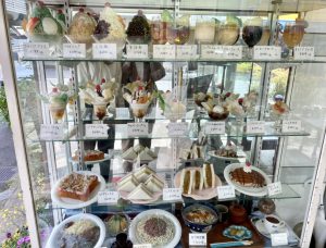 岡山市にある喫茶店で入口にたくさん食品サンプルがあり
