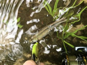 なかなか釣れない中、小川を登っていくとやっとヒット!