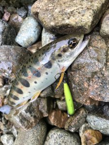 ポイントを変えてまた川を上がっていくとやっと本命のアマゴが!!
