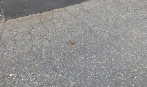 お客様のお勤め先へ訪問し用事を済ませて駐車場まで歩いていると、目の前に石ころ?っぽい