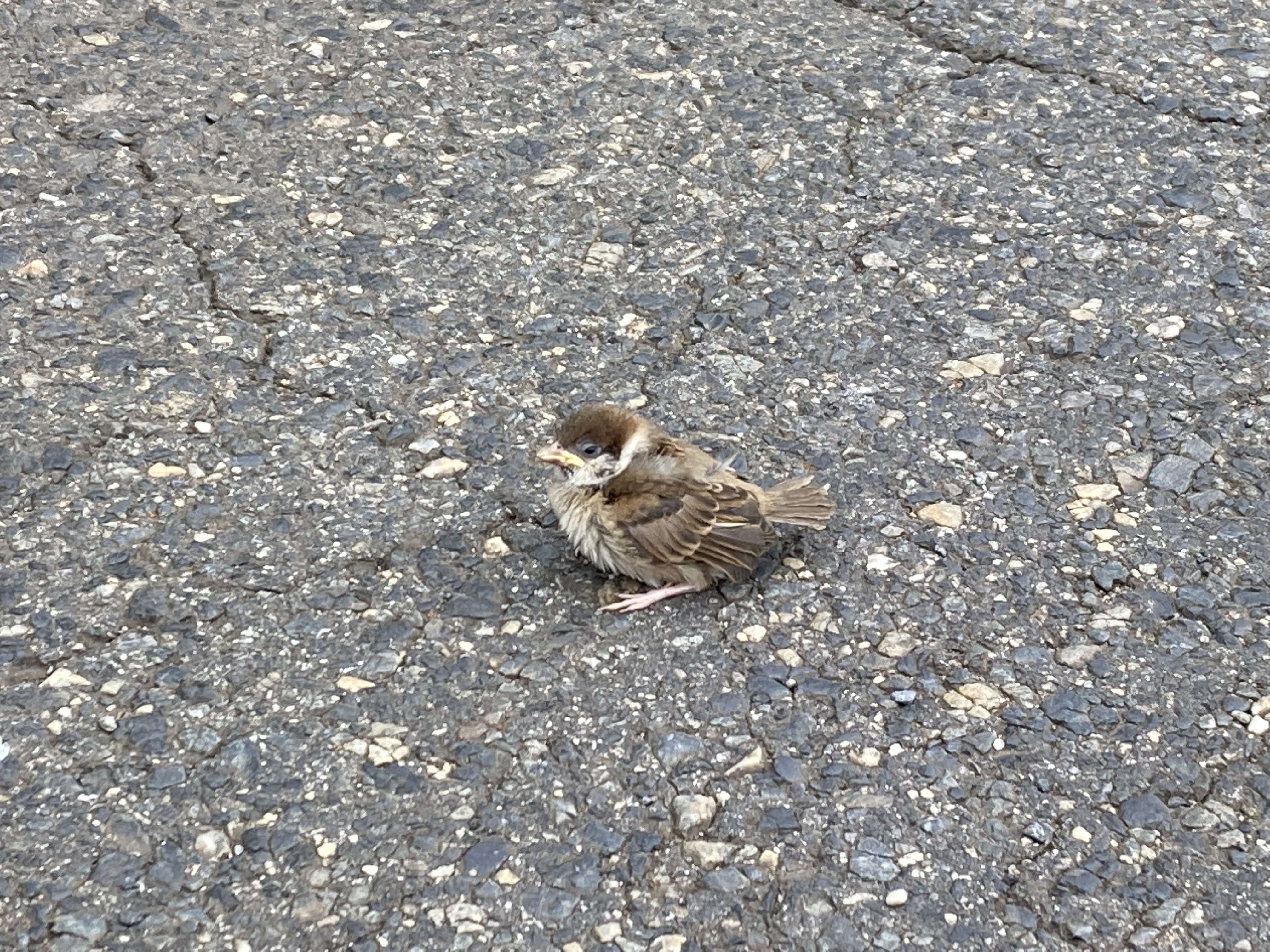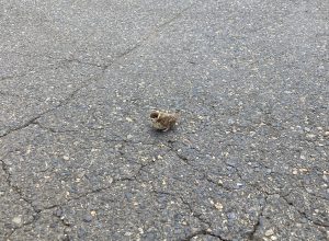 野鳥のヒナは拾うなとあったのでグッと我慢して道路の隅へ寄せました><