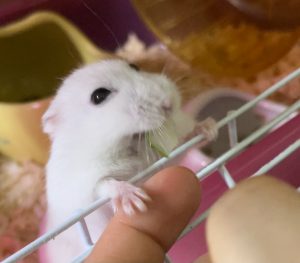 飼っているハムスターの ちゅんちゅん に餌をあげることです