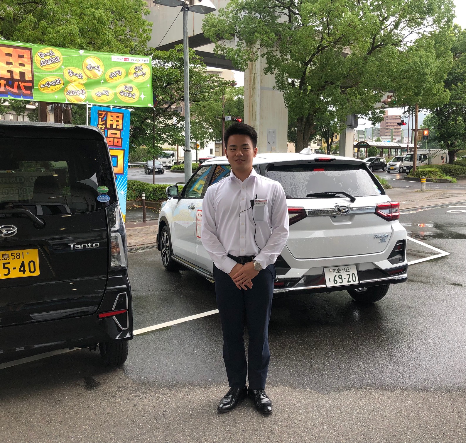 今年の4月にダイハツ広島に入社し、1か月の研修を経て5月からこの祇園新道店に配属になりました!