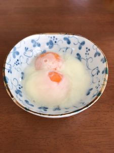 完成品です。もう少し時間を長くすると、少し黄身がかたまりますが、僕のベストは13分です。