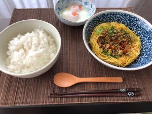 個人的には、汁なし担々麵に欠かせないのが温泉卵と白米。温泉卵は沸騰させたお湯の火を止め13分ほどつけておくだけ!!