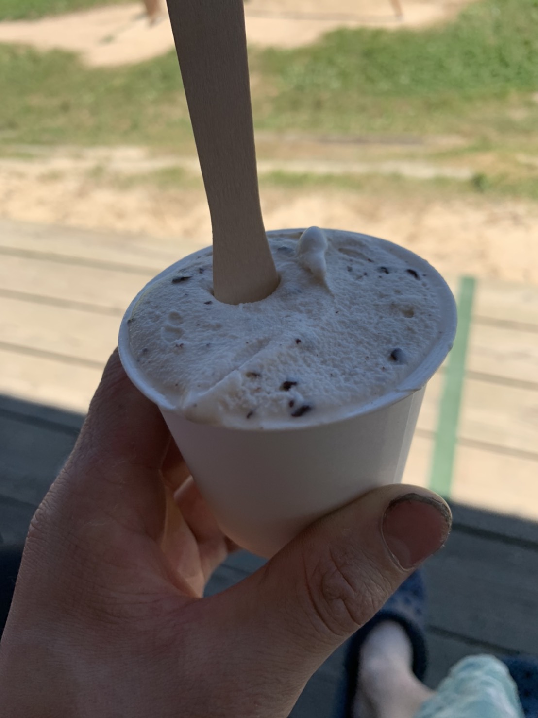 外が暑すぎて日陰で食べないと、すぐアイスが溶けてしまいそうでした