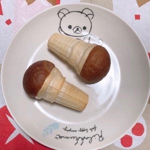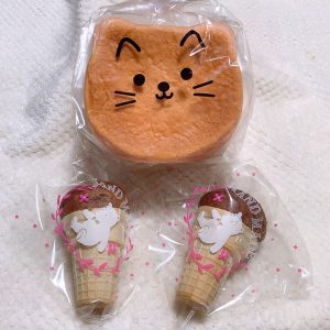 なんと!!手作りの猫食パン(イチゴ味)とアイス風チョコパンをくださいました\( *´∀`* )/