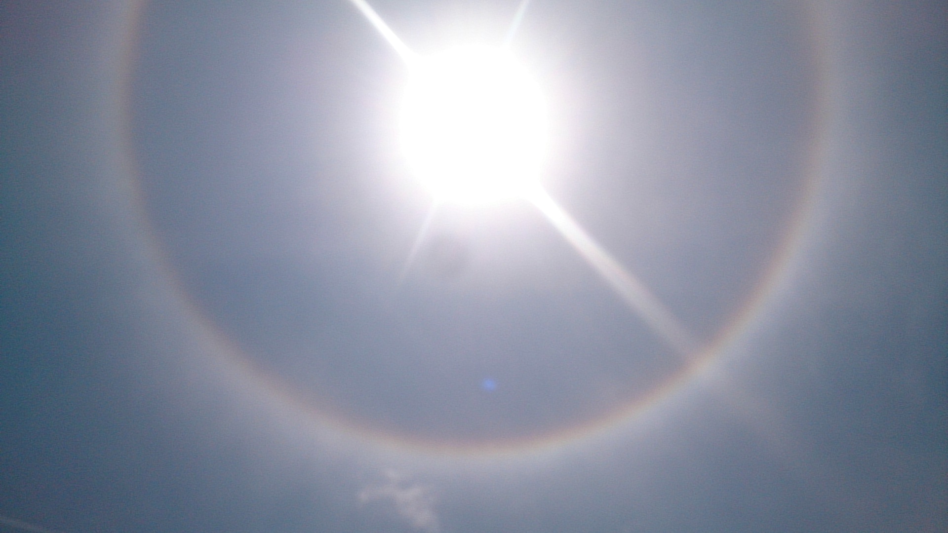 ネットで調べたところ、ハロが見られるときは、天気の下り坂のサインだそうで、