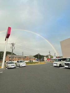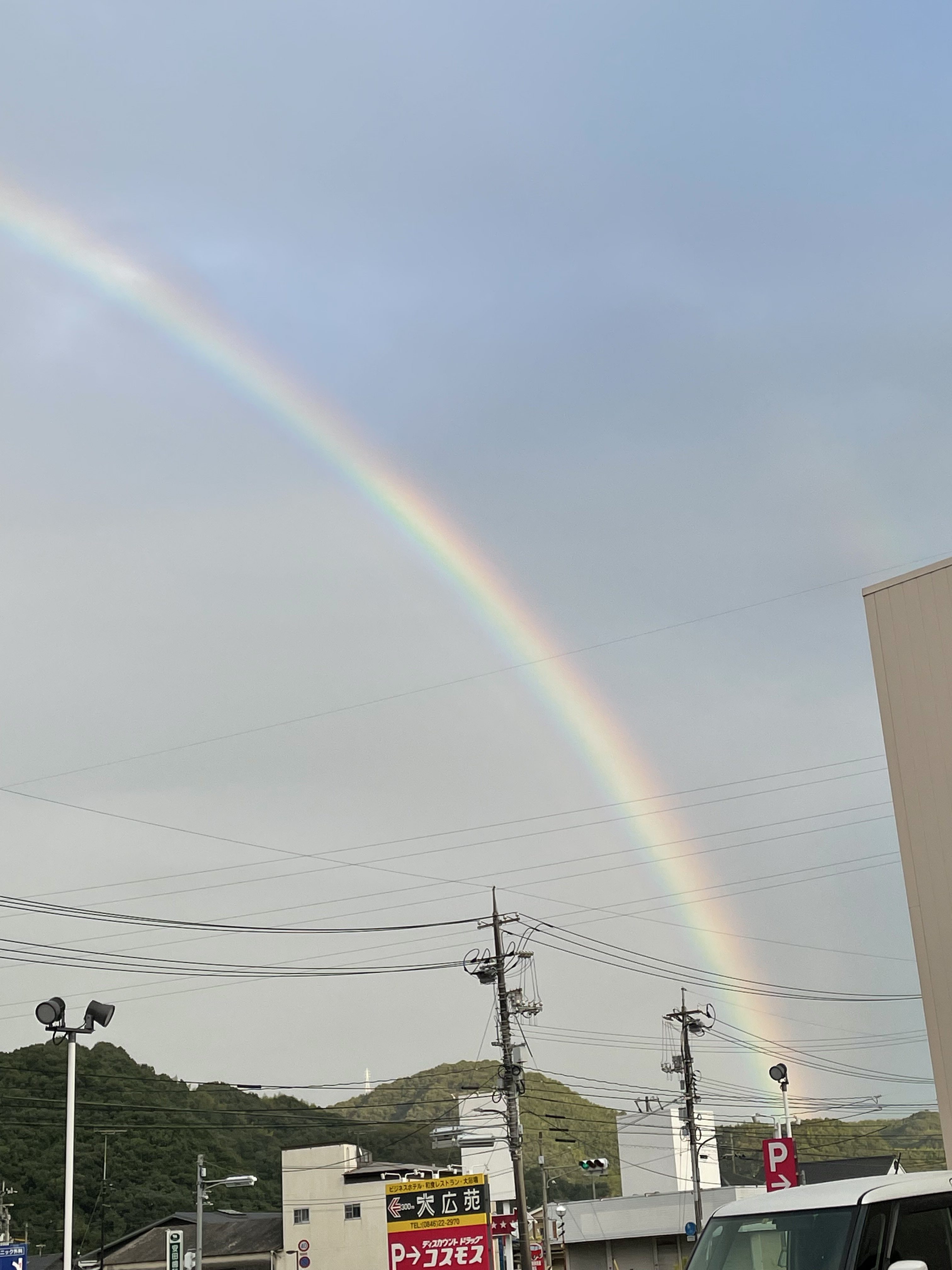 お買い物をし終わって車に乗ろうとした所、大きな虹がふと見えてすぐ写真を撮りました(o^―^o)