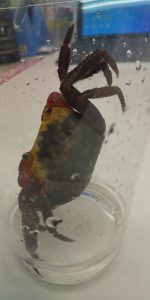 先日、ダイハツ広店の駐車場を歩いていたアカテガ二を捕まえました。お家に連れて帰って、、、