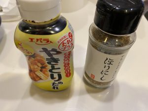 余ったげそなどは、焼き鳥のたれとほりにしのスパイスを加え炒めます!