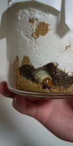 今年生まれたヒラタクワガタの幼虫、菌糸ビンの中ですくすく育ってますよ!