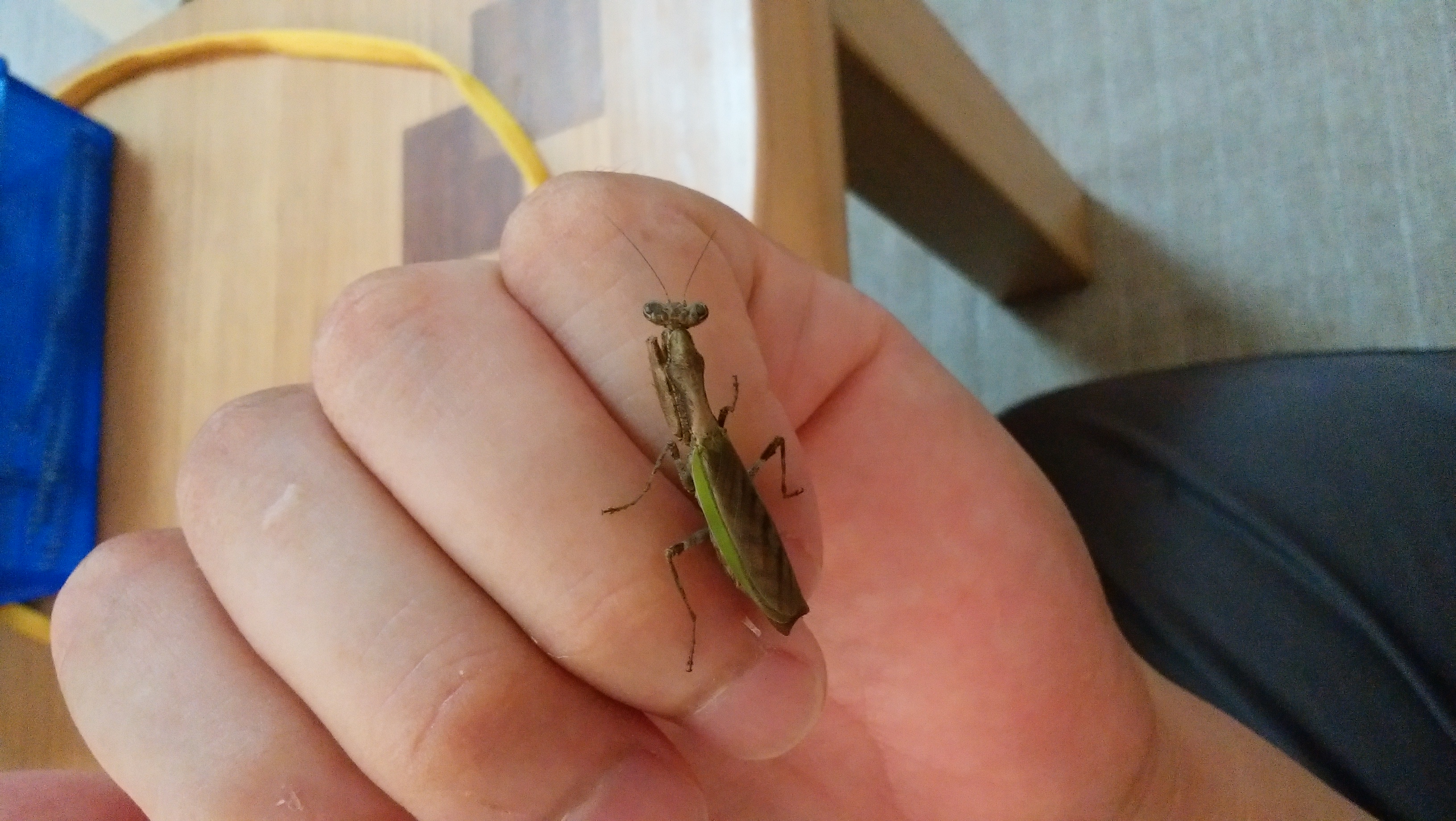 つかみのカマキリは、今年もいました、ヒメカマキリです。