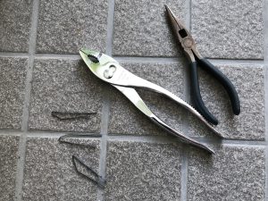 U字ピンがもしあれば良いそうなのですが無かったので奥様のヘアピンを工具で折り曲げ